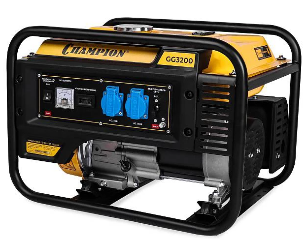 Генератор CHAMPION GG3200 предназначен для снабжения электричеством приборов мощностью до 3,5 кВт.