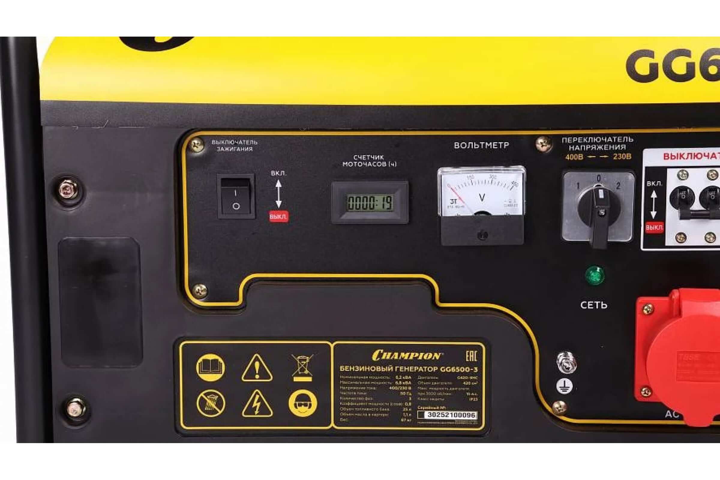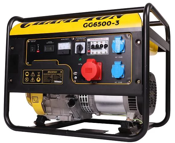 Трехфазный бензиновый генератор CHAMPION GG6500-3 предназначен для обеспечения автономного электроснабжения во время путешествий за город, отсутствия необходимого напряжения в сети, а также для подзарядки различных электроприборов.