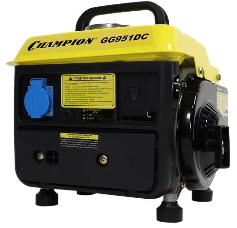 Генератор бензиновый Champion GG951DC - легкий и компактный бензиновый генератор Champion GG951DC предназначен для использования в качестве резервного источника электроэнергии в условиях небольшого дачного участка или загородного дома. Мощности этой модели достаточно для эффективного использования в быту, с его помощью можно запитать холодильник и освещение или аналогичные по мощности электроприборы. Также эту модель можно применять при проведении монтажных работ вдали от электросети, такого генератора хватит для обеспечения питанием одного-двух шуруповертов или небольшой дрели.