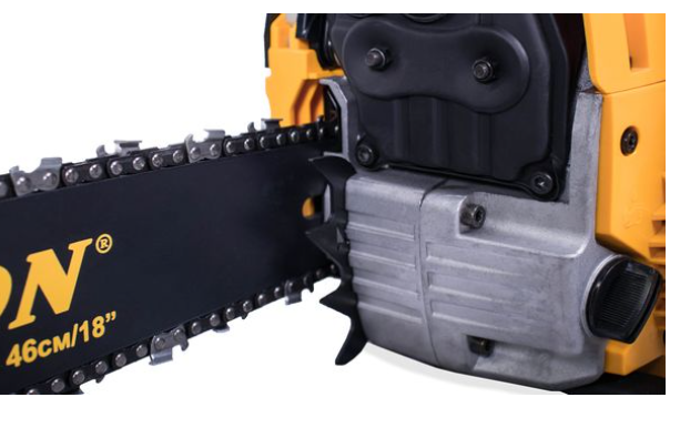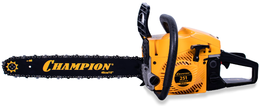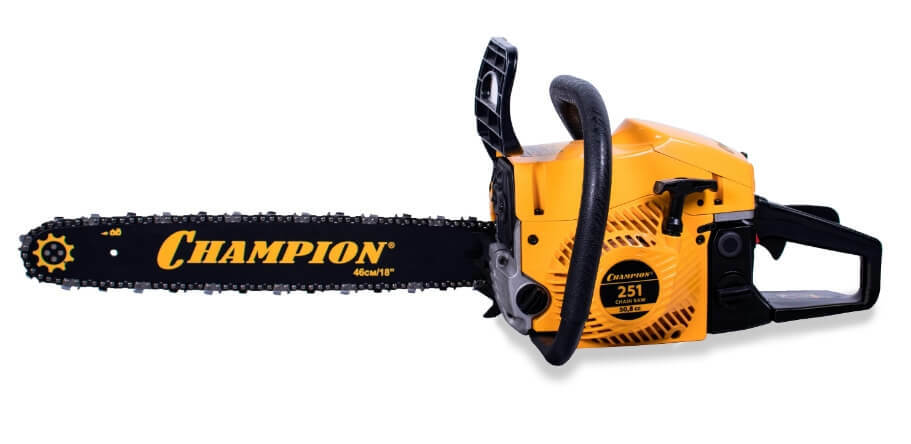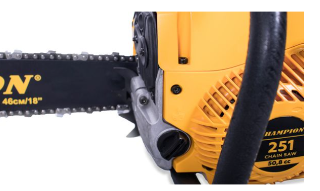 Бензопила Champion 251-18 – мощная бензиновая модель позиционируемая производителем как профессиональная. Мощность двухтактного мотора пилы составляет 3,13 лошадиные силы, а длинна полотна достигает 45 см. Натяжение цепи боковое, сама шина имеет четыре точки крепления ведомой звездочки. За подачу топливной смеси отвечает диафрагменный карбюратор Walbro. Стартер у пилы ручной с системой легкого запуска, упрощающей продергивание шнура кик стартера на 30%.