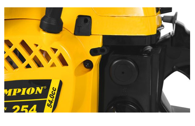- Для обеспечения высокой производительности цепная бензопила Champion 254-18 имеет двухтактный мотор с хромированным цилиндром объемом 54 см3. Его мощность в 3.3 л.с. удовлетворит самого требовательного специалиста.