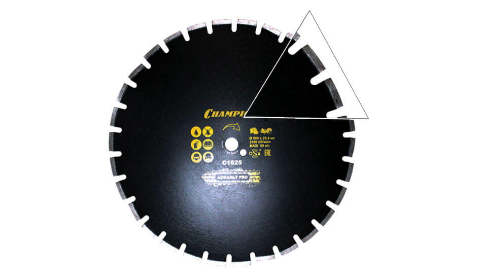 Особенности: наклонённые сегменты обеспечивают эффективную защиту корпуса диска от стирания при резке абразивных материалов; широкие межсегментные канавки для быстрого удаления отходов.