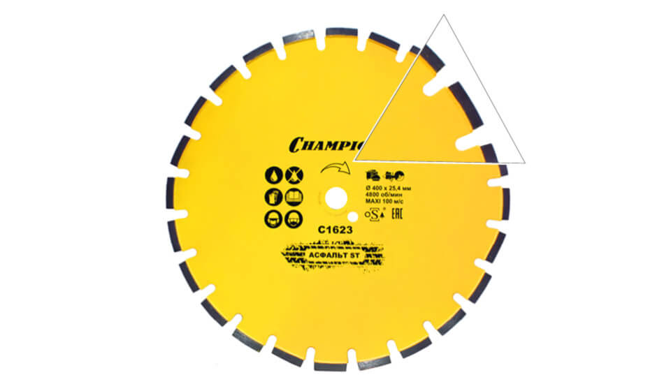 Особенность: скошенные сегменты для защиты корпуса диска от подрезания.