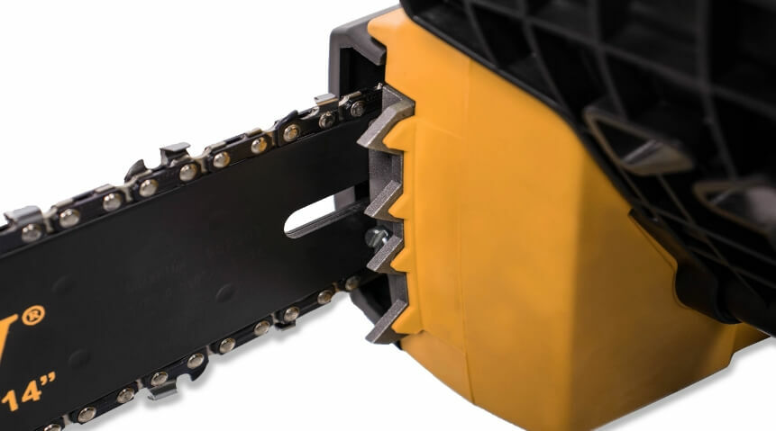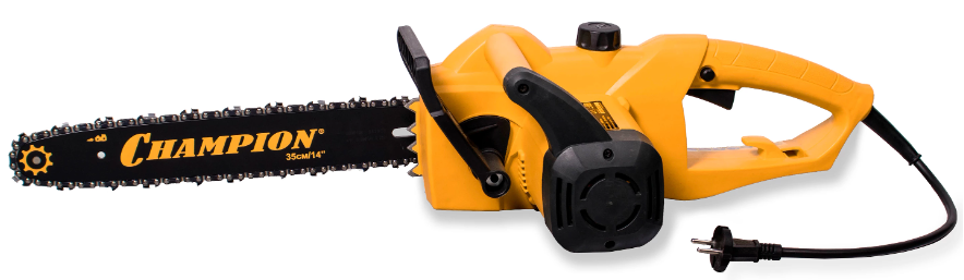 Электропила Champion 120-14 – лёгкая электрическая модель с поперечным расположением двигателя. Пила развивает внушительную мощность в 2000 Вт. Такая мощность позволяет без труда вращать пильное полотно длиной 35 см. Корпус пилы выполнен из прочного пластика яркого желтого цвета. У модели предусмотрен бак для заправки смазочного масла. Это масло подается автоматическим насосом на пильное полотно для улучшения скользящих характеристик и избегания прогорания полотна.