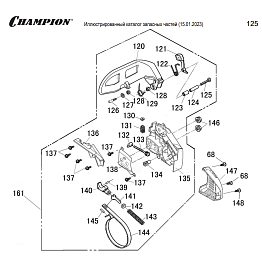 4 | Запчасти для бензопилы чемпион 125-Т | | обновлённая деталировка после 15.01.2023 года | ТОРМОЗ ЦЕПИ | Поставка по России | Магазин-Сервис в СПБ |