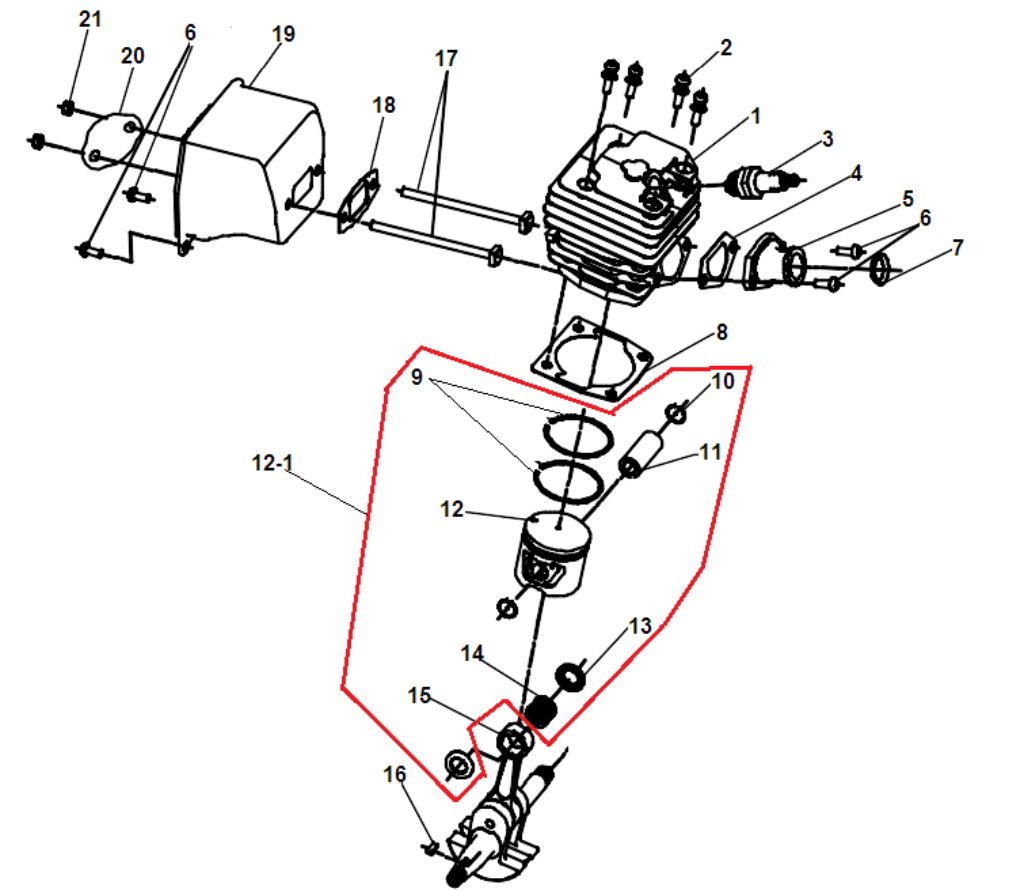4 СТАРТЕР - ТОРМОЗ ЦЕПИ | Запчасти для бензопилы чемпион 245 | Поставка по России | Магазин-Сервис в СПБ |