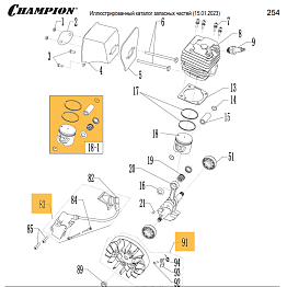 1 | Запчасти для бензопилы чемпион 254 | обновлённая деталировка после 15.01.2023 года | ПОРШЕНЬ - ЦИЛИНДР - СВЕЧА - МАХОВИК - МАГНЕТО | Поставка по России | Магазин-Сервис в СПБ |