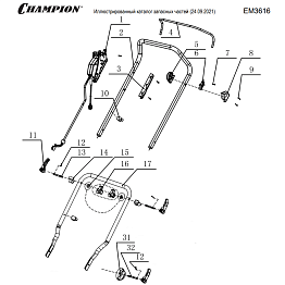 1 | РУЧКА - ВЫКЛЮЧАТЕЛЬ | Запчасти для газонокосилки чемпион EM3616 | обновлена 24.09.2021 года | Поставка по России | Магазин-Сервис в СПБ |