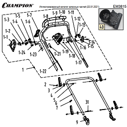 1 | РУЧКА - ВЫКЛЮЧАТЕЛЬ | Запчасти для газонокосилки чемпион EM3815 | Поставка по России | Магазин-Сервис в СПБ |