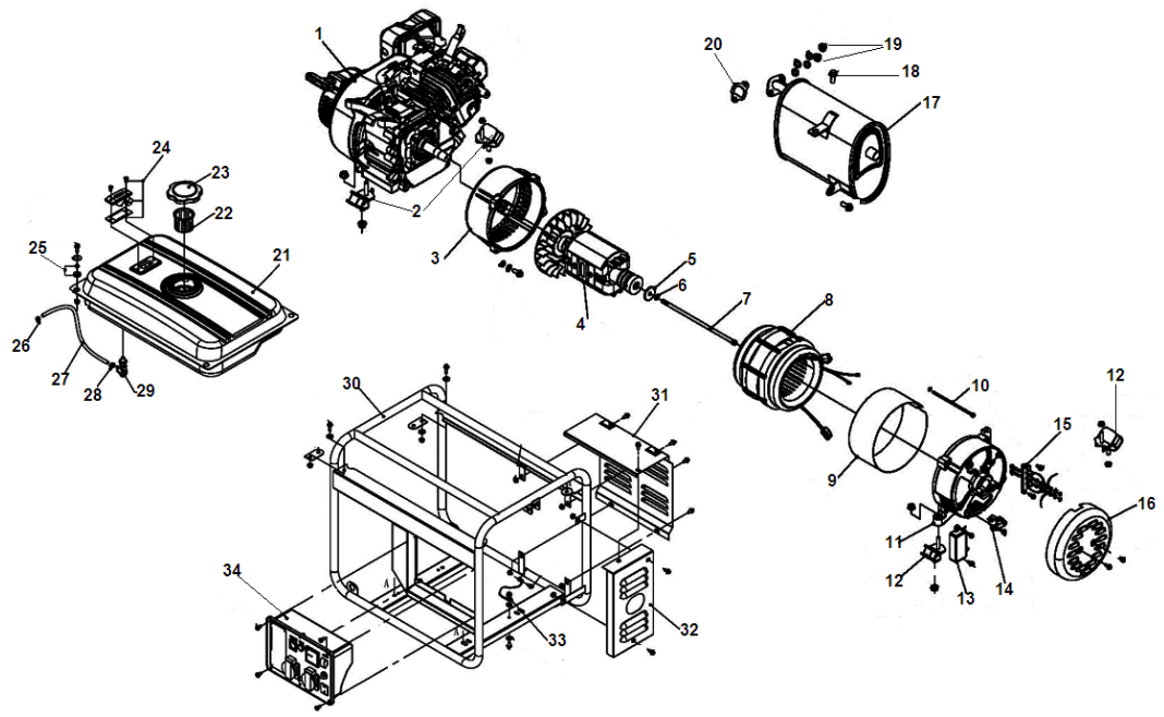 1 ЯКОРЬ - СТАТОР - БЛОК AVR - БАК - АККУМУЛЯТОР | Запчасти для генератора чемпион GG3300 | Поставка по России | Магазин-Сервис в СПБ |