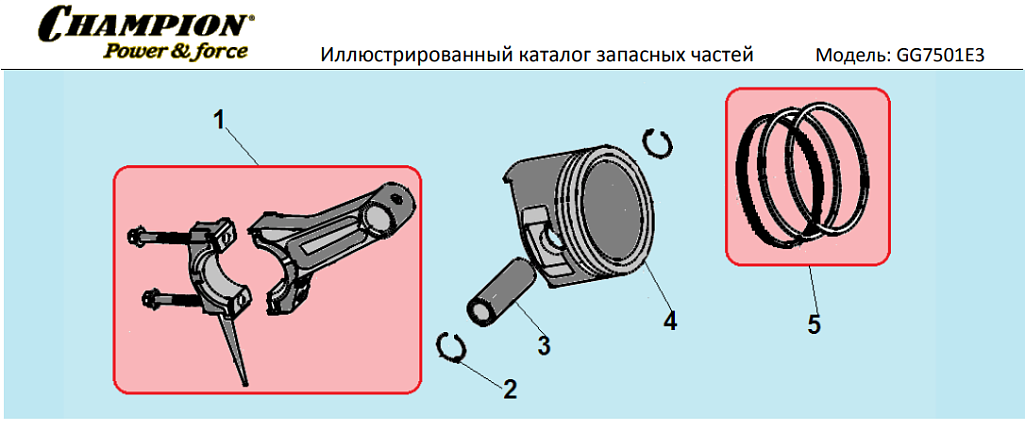 5 | Поршень - Шатун | Запчасти для генератора чемпион | GG7501E-3 | обновлена | Поставка по России | Магазин-Сервис в СПБ |