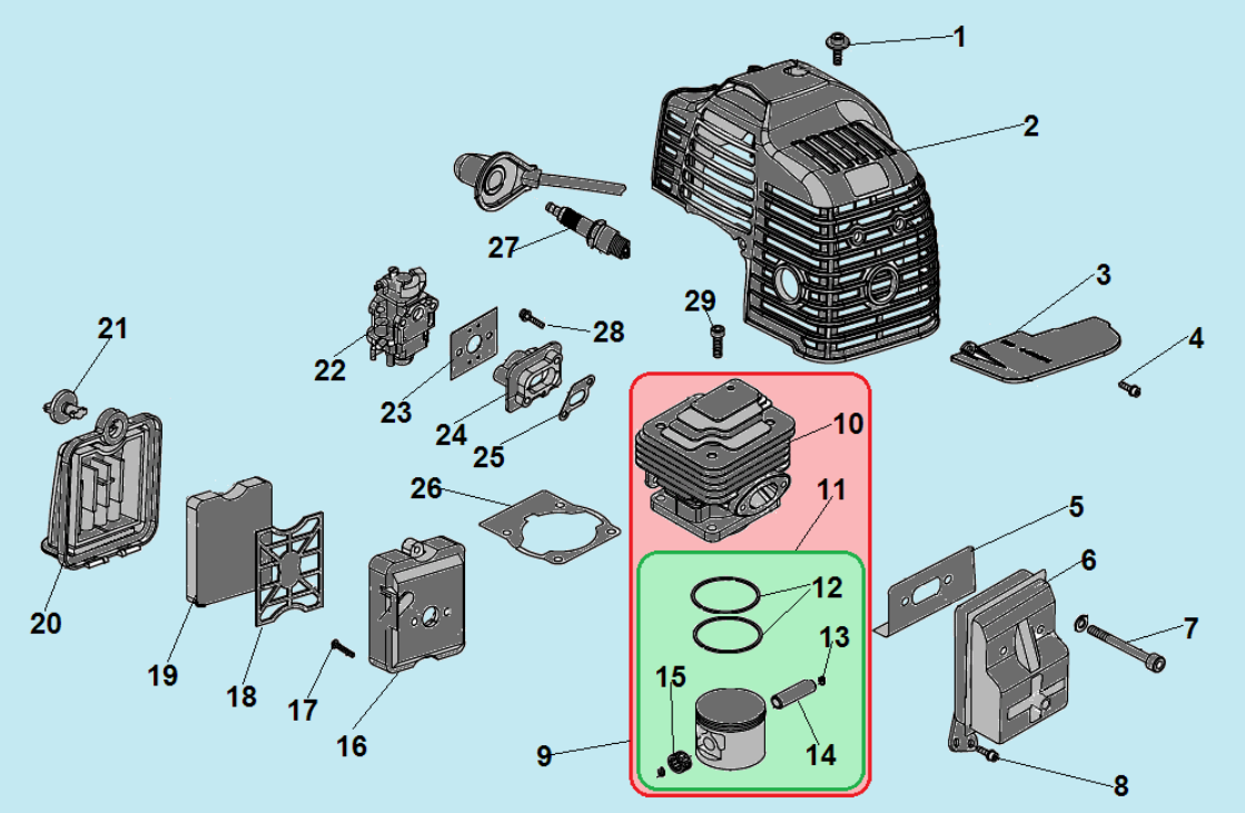 3 КАРБЮРАТОР - ПОРШЕНЬ - ЦИЛИНДР - КАРТЕР | Запчасти для культиватора, мотоблока чемпион GC243E | Поставка по России | Магазин-Сервис в СПБ |