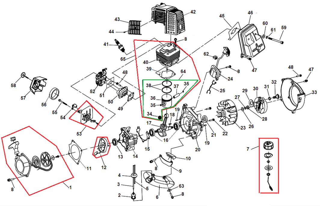 1 ПОРШЕНЬ - КОЛЬЦА - ЦИЛИНДР - ФИЛЬТР ВОЗДУШНЫЙ - СТАРТЕР - МАГНЕТО - МАХОВИК - КОЛЕНВАЛ - СЦЕПЛЕНИЕ | Запчасти для мотобура чемпион AG252 | Поставка по России | Магазин-Сервис в СПБ |