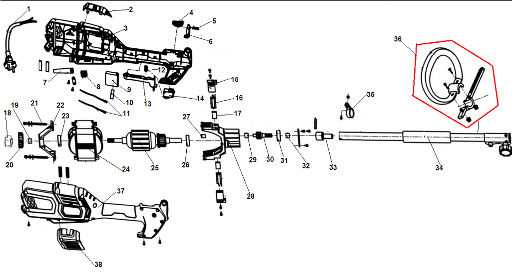1 Электродвигатель - Щетки - Якорь - Статор - Выключатель | Запчасти для триммера чемпион ЕТ1004А | Поставка по России | Магазин-Сервис в СПБ |