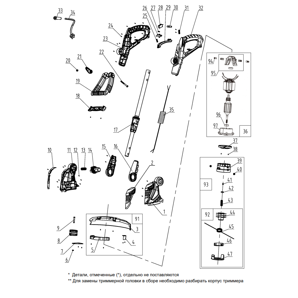1 Электродвигатель - Щетки - Головка - Кожух - Якорь - Статор | Запчасти для триммера чемпион ЕТ452 | обновленная деталировка после 20.03.2020 | Поставка по России | Магазин-Сервис в СПБ |