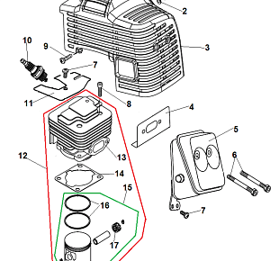 1 ПОРШЕНЬ - ЦИЛИНДР - СВЕЧА | Запчасти для триммера чемпион Т347-2 | Поставка по России | Магазин-Сервис в СПБ |