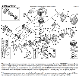 1 | Запчасти для триммера чемпион T438S-2 | КАРБЮРАТОР - ПОРШЕНЬ - ЦИЛИНДР - СВЕЧА - СЦЕПЛЕНИЕ - МАХОВИК - МАГНЕТО | Поставка по России | Магазин-Сервис в СПБ |