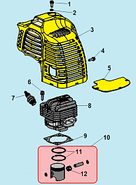 1 ПОРШЕНЬ - ЦИЛИНДР - СВЕЧА | Запчасти для триммера чемпион Т523 | Поставка по России | Магазин-Сервис в СПБ |