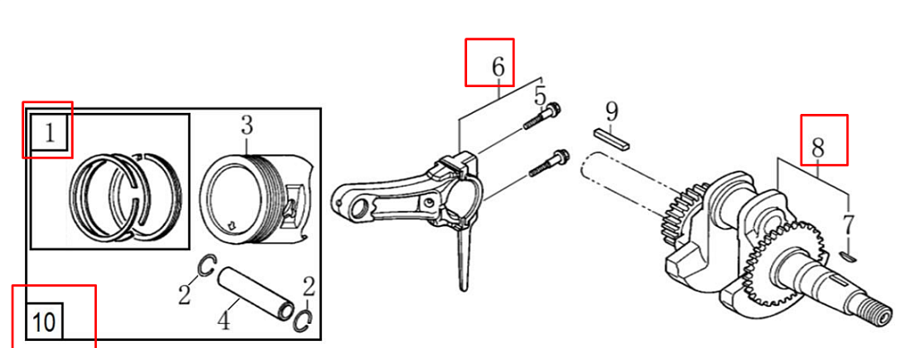 5 | ПОРШЕНЬ - КОЛЕНВАЛ- КОЛЬЦА | Запчасти для виброплиты чемпион | PC6036F | Поставка по России | Магазин-Сервис в СПБ |