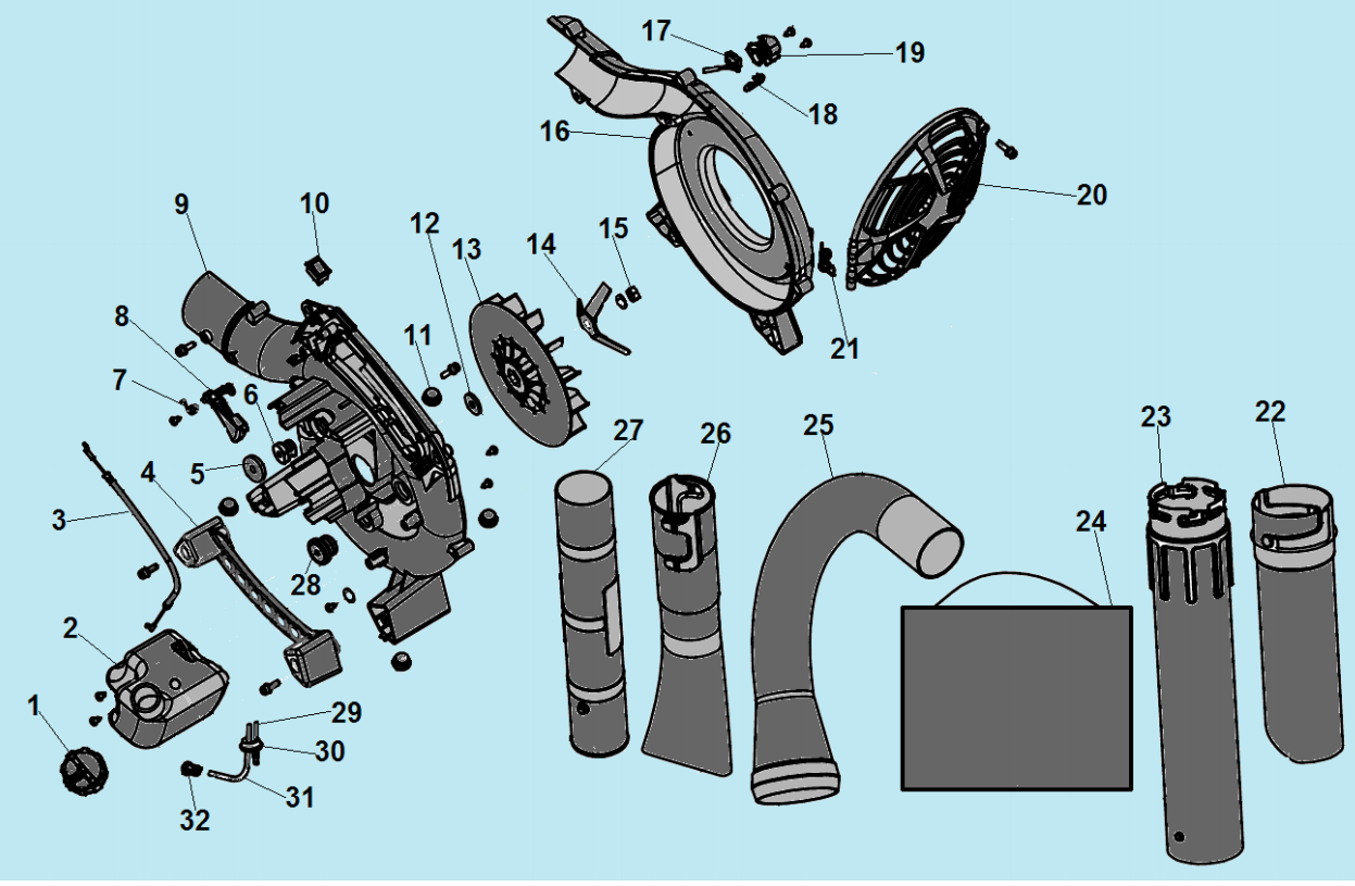 2 КРЫЛЬЧАТКА - ТРУБЫ - СТАРТЕР | Запчасти для воздуходувки чемпион GВV327S | Поставка по России | Магазин-Сервис в СПБ |