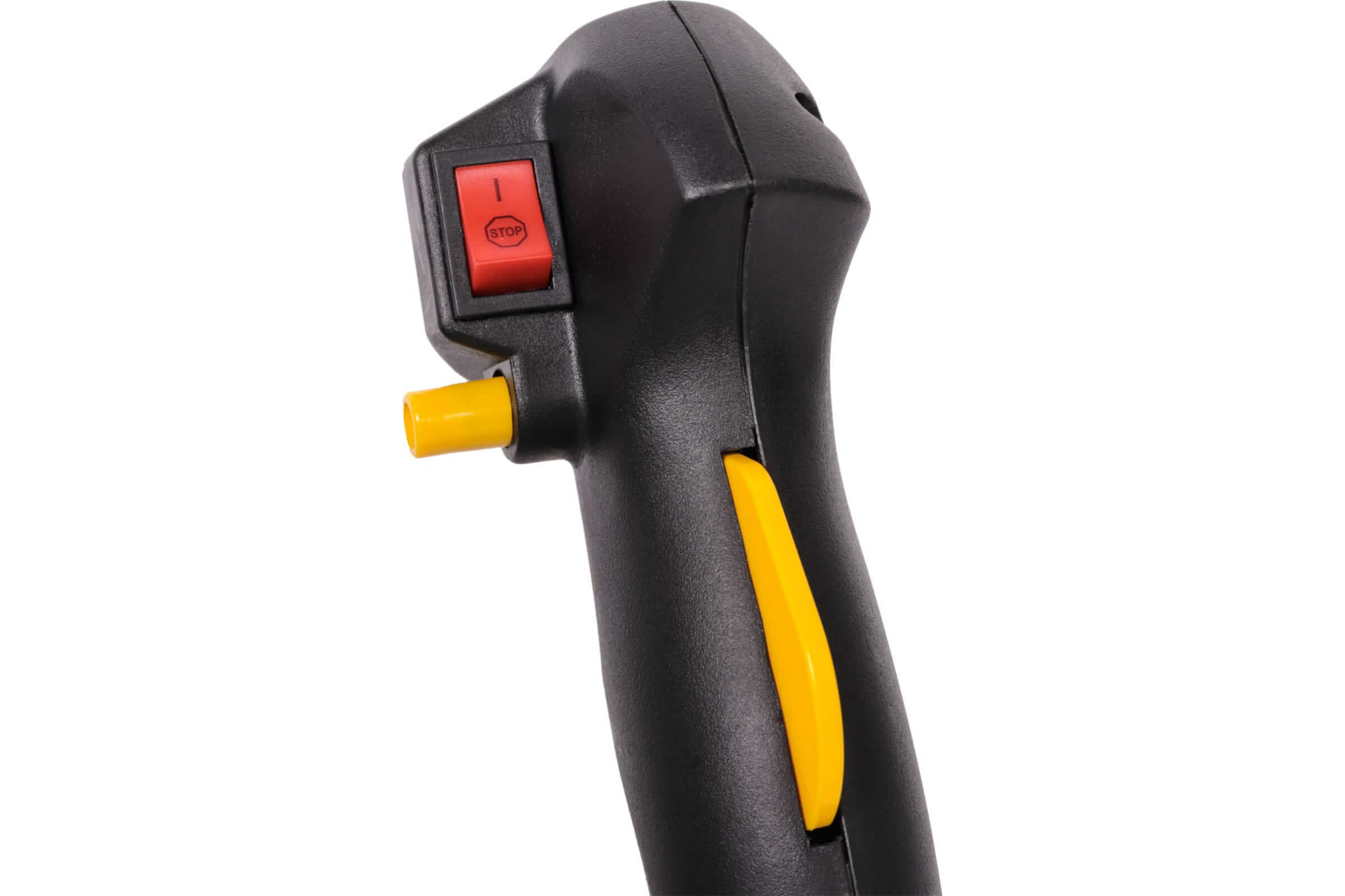 Оснащен двигателем объемом 51.6 куб.см и мощностью 1.46 кВт, который обеспечивает до 8500 об/мин, и способен работать шнеками диаметром до 250 мм (по почве) и до 200 мм (по льду).