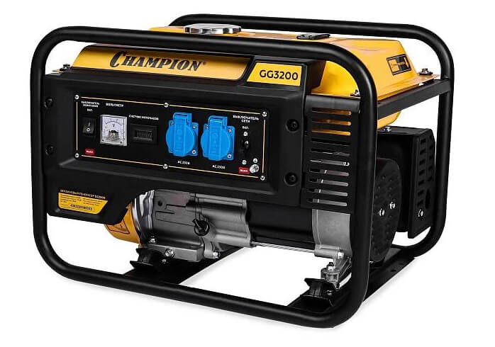 Генератор CHAMPION GG3200 предназначен для снабжения электричеством приборов мощностью до 3,5 кВт.