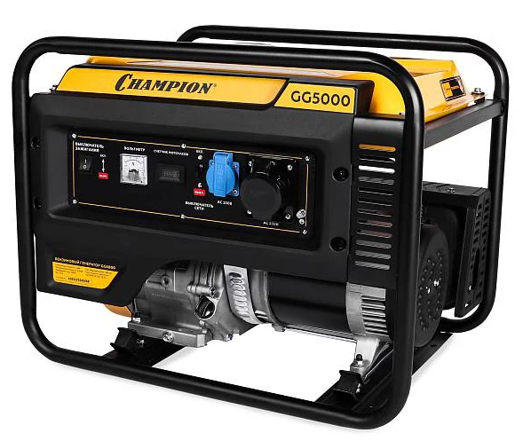 Генератор CHAMPION GG5000 предназначен для снабжения электричеством приборов мощностью до 5,5 кВт.