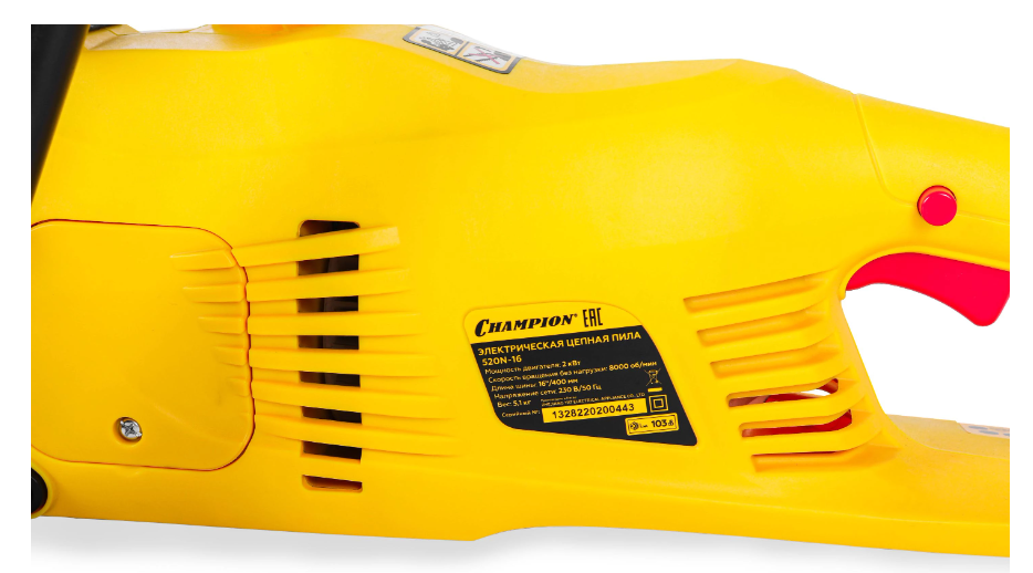 Недорогая, дешевая по цене электропила Чемпион 520 N - 16 с двигателем мощностью 2 кВт предназначена для домашнего хозяйства, небольшого строительства, работ на садовом участке. Снабжена тормозом цепи для мгновенной остановки цепи в случае отскока. Имеет металлический упор для более точной работы. Крышка шины оснащена гайкой для бесключевого натяжения цепи. Цена электропилы Чемпион 520N-16 от производителя, соответствует качеству.