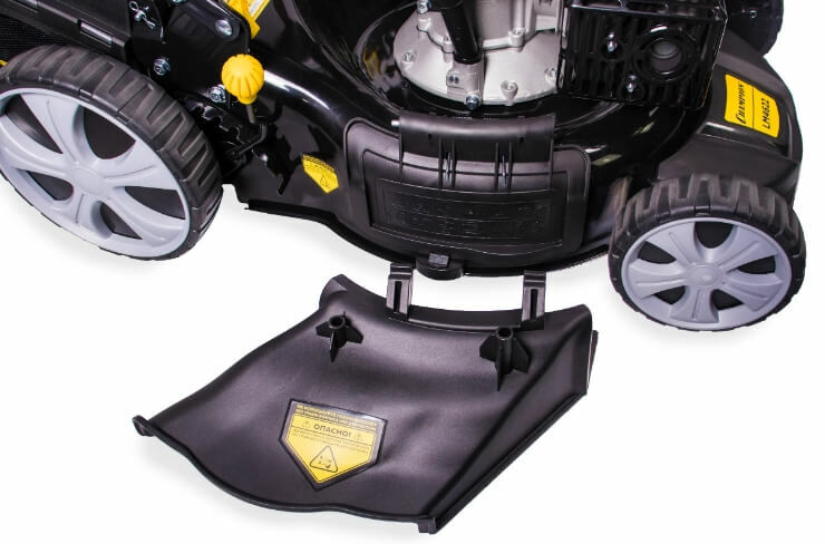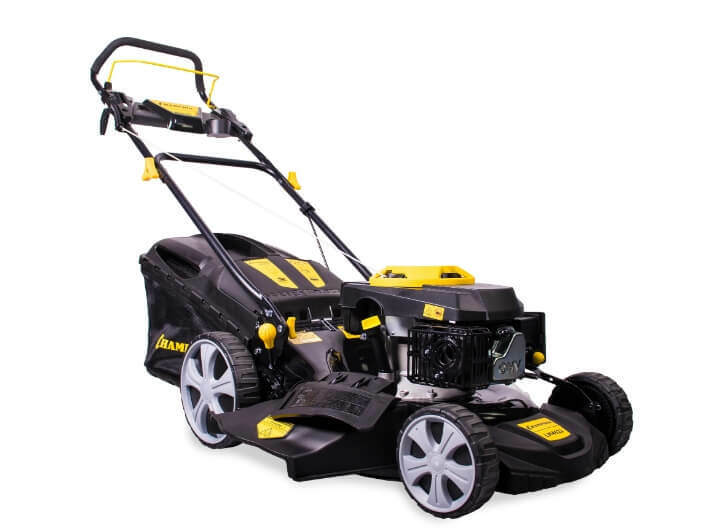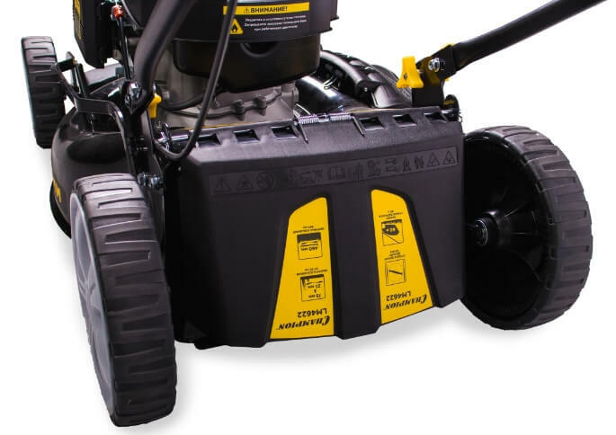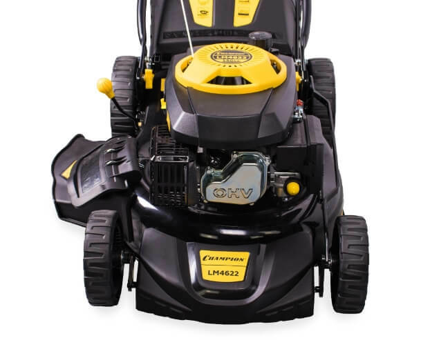 Косилка CHAMPION LM4622 оборудована четырехтактным бензиновым мотором с верхним расположением клапанов и вертикальным валом.