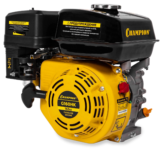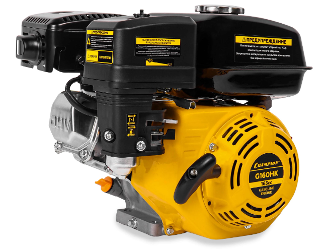 Двигатель Champion G160HK – четырехтактная модель с верхним расположением клапанов для применения на мотоблоках, культиваторах, снегоуборочных машинах, виброплитах и на другой садовой или строительной технике.