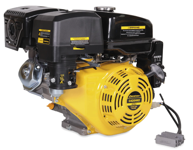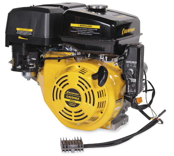 Двигатель Champion G420HKE четырёхтактный бензиновый двигатель с горизонтальным валом и электростартером предназначен для установки в качестве привода на различную садово-парковую и иную технику: мотоблоки, мотокультиваторы, мотопомпы, снегоуборщики, виброплиты и т.д.