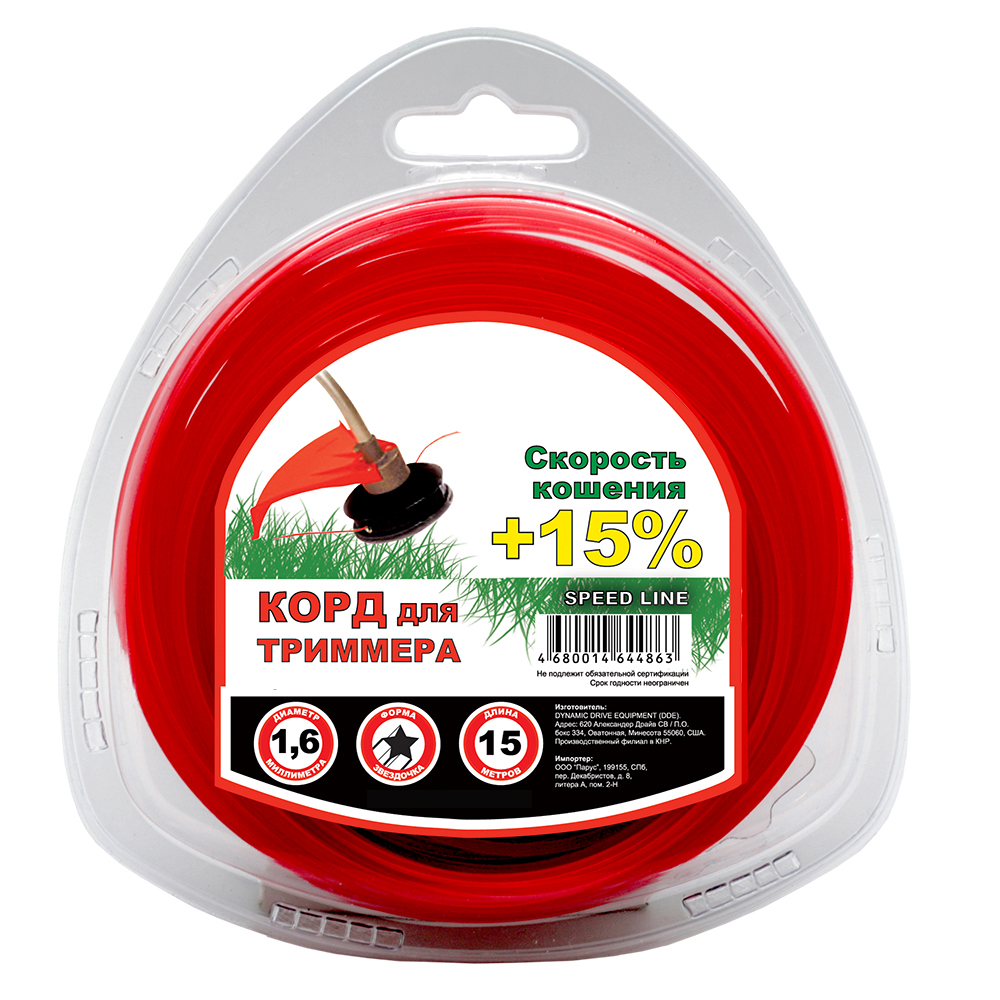 Леска для триммера Чемпион | в блистере (звезда) | Ø 1,6 мм х 15 м, красный