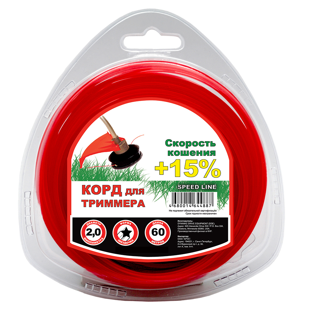 Леска для триммера Чемпион | в блистере (звезда) | Ø 2,0 мм х 60 м, красный