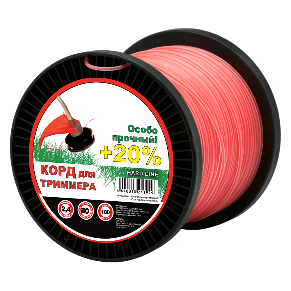Леска для триммера Чемпион | на катушке (круг армированный) | Ø 2,4 мм х 180 м, серый/красный