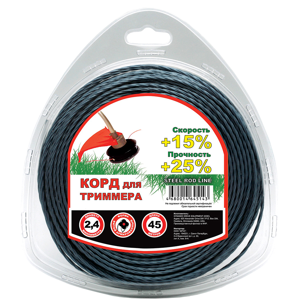 Леска для триммера Чемпион | в блистере (крест витой армированный) | Ø 2,4 мм х 45 м, голубой/красный