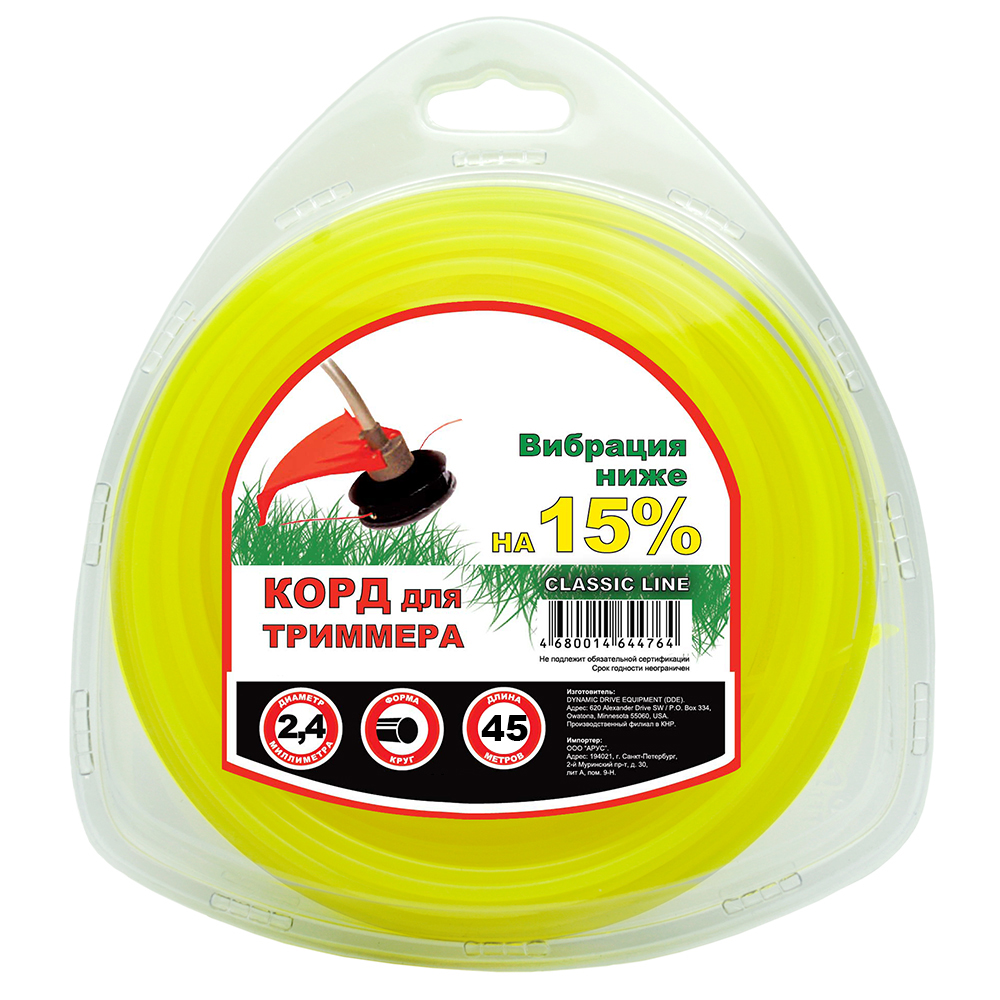 Леска для триммера Чемпион | в блистере (круг) | Ø 2,4 мм х 45 м, желтый