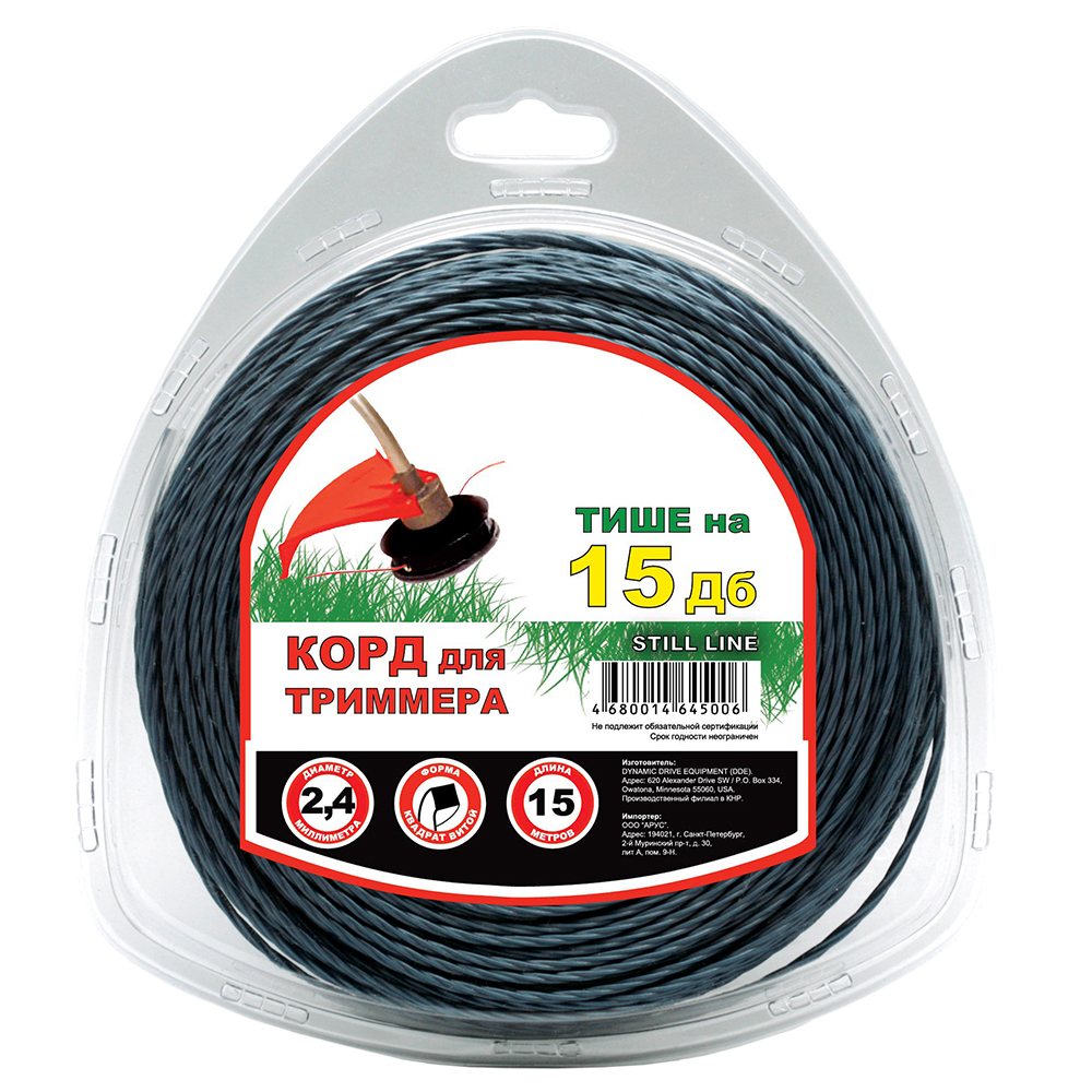 Леска для триммера Чемпион | в блистере (витой квадрат) | Ø 2,4 мм х 15 м, голубой