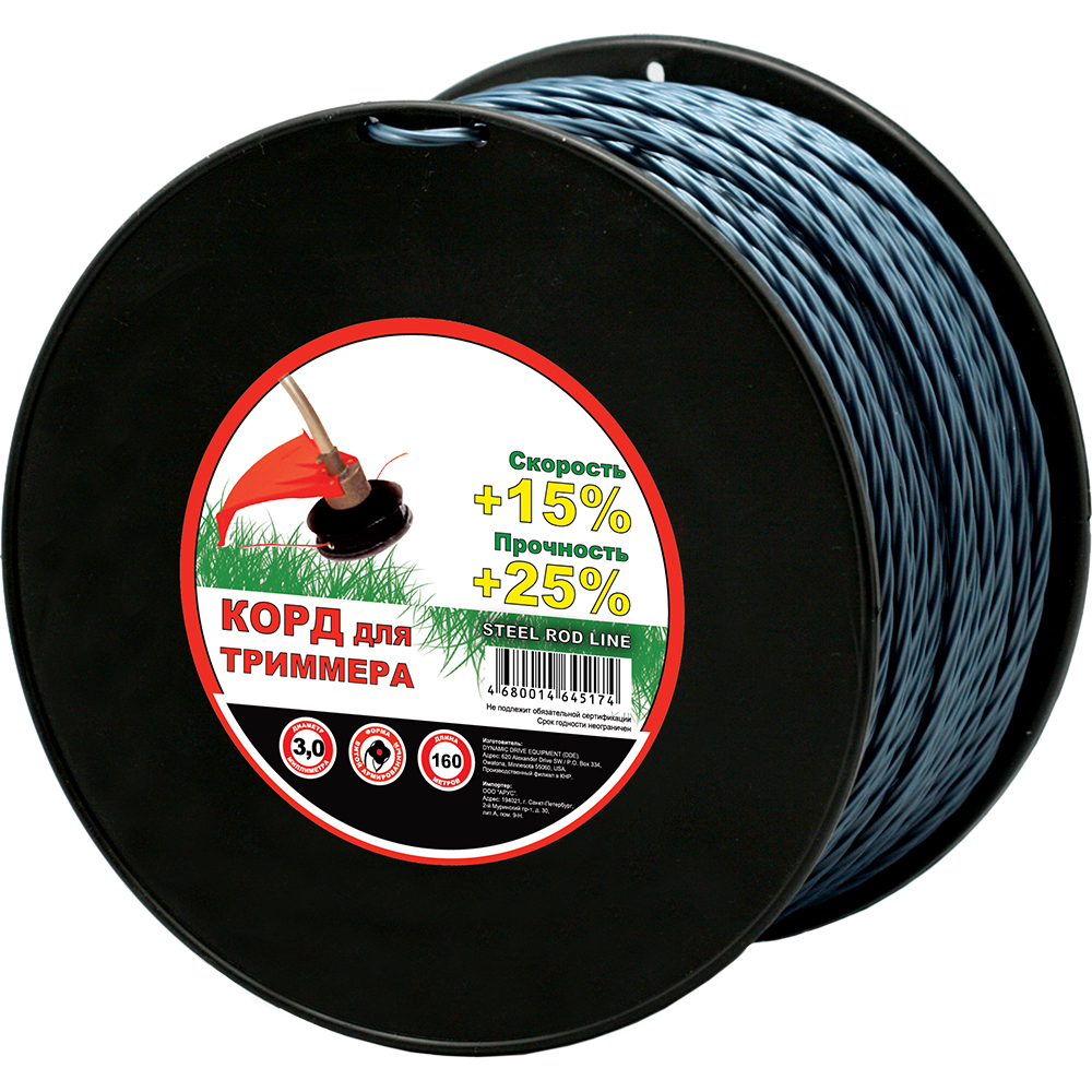 Леска для триммера Чемпион | на катушке (крест витой армированный) | Ø 3,0 мм х 160 м, голубой/красный