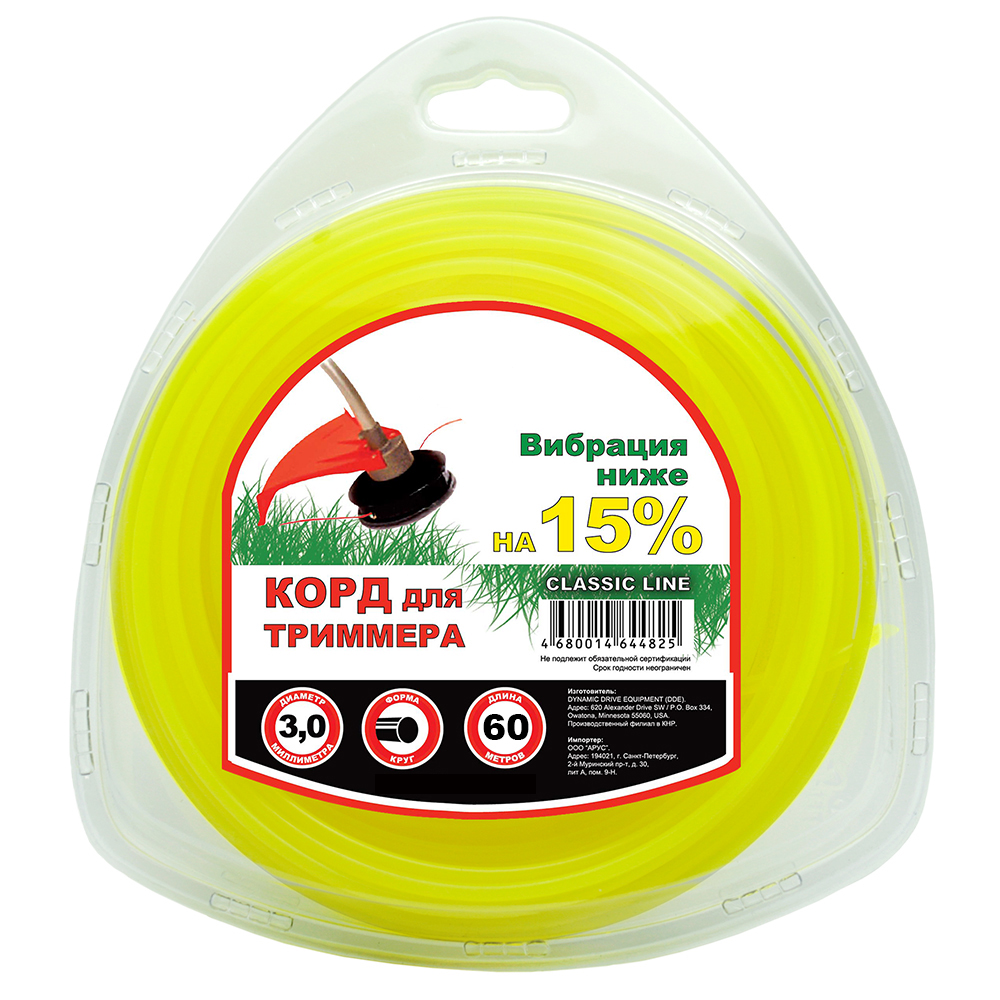 Леска для триммера Чемпион | в блистере (круг) | Ø 3,0 мм х 60 м, желтый