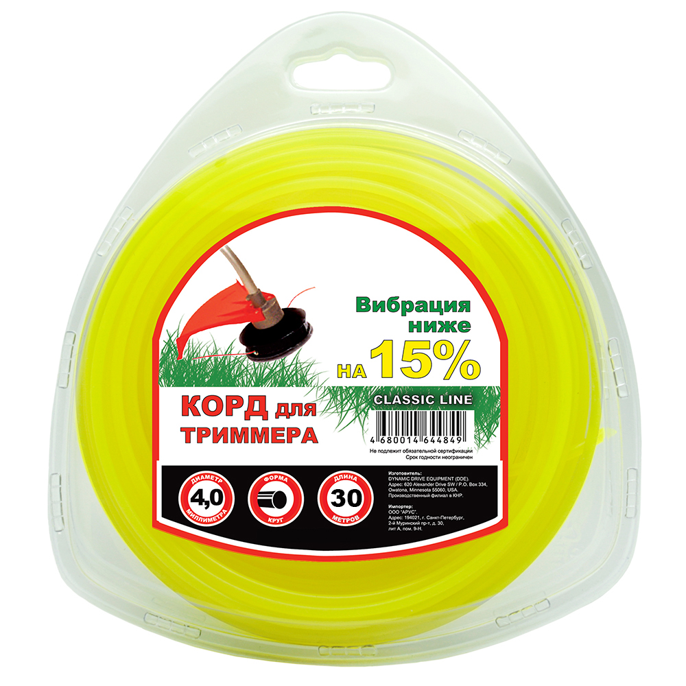 Леска для триммера Чемпион | в блистере (круг) | Ø 4,0 мм х 30 м, желтый