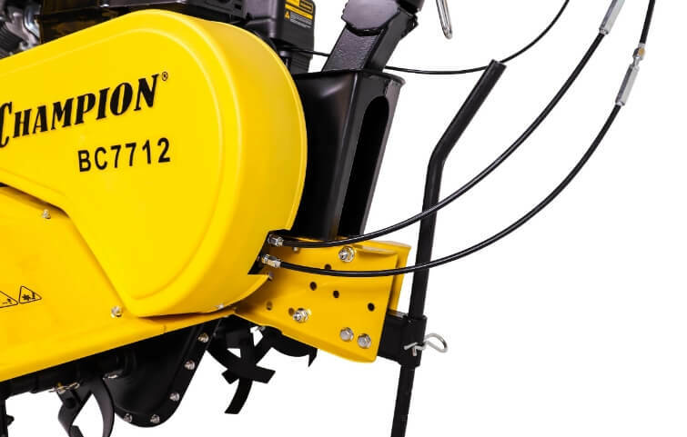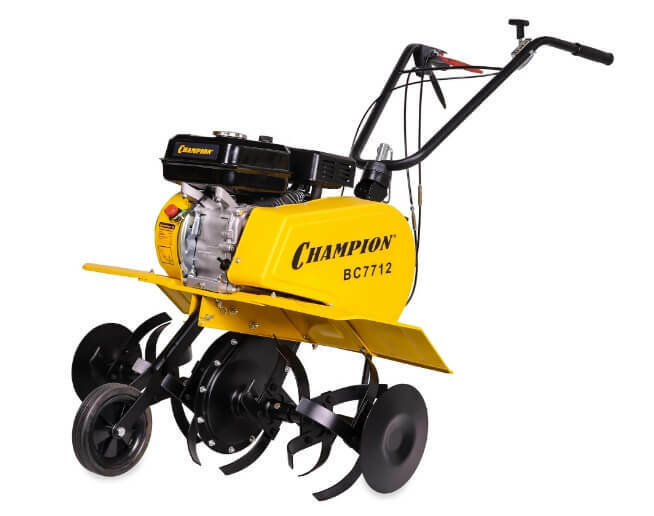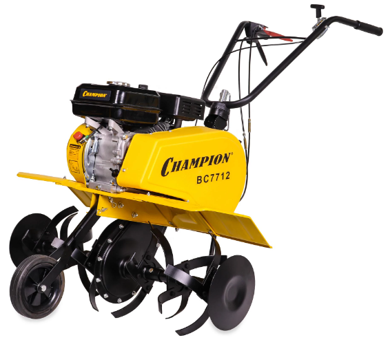 Культиватор бензиновый Champion ВC 7712 - этот агрегат с бензиновым типом двигателя отлично справится с культивацией, прополкой, окучиванием и другими работами на участке до 20 соток. На мотокультиватор champion установлен двигатель Champion G200F обладающий большим запасом надежности и мощностью 6,5 лошадиных сил. Имеется регулировка оборотов двигателя и система электронного зажигания. Мотор надежно защищен от перегрева воздушным охлаждением. Крепкая рама способна выдержать даже самые большие нагрузки, а тяжелый вес позволяет работать на твердых почвах. Благодаря возможности настройки ширины захвата, мотокультиватор способен эффективно работать на участках различных размеров: от малых до больших.