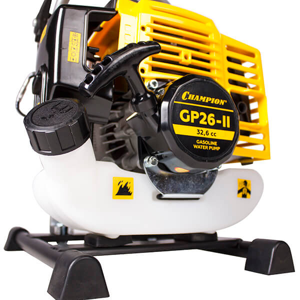 Мотопомпа Champion GP26-II - оснащается надежным двухтактным двигателем, который работает без остановки 8-10 часов. Имеет воздушное охлаждение. Мотопомпа Чемпион GP 26 2 является бытовым устройством, помогающим поливать приусадебные участки, газоны, сады, парники и другие небольшие территории. Отбрасывание воды происходит на 30 метров. Небольшой вес позволяет любому взрослому и подростку с легкостью перенести оборудование. Для лучшей работы необходимо поставить инструмент на ровную поверхность.