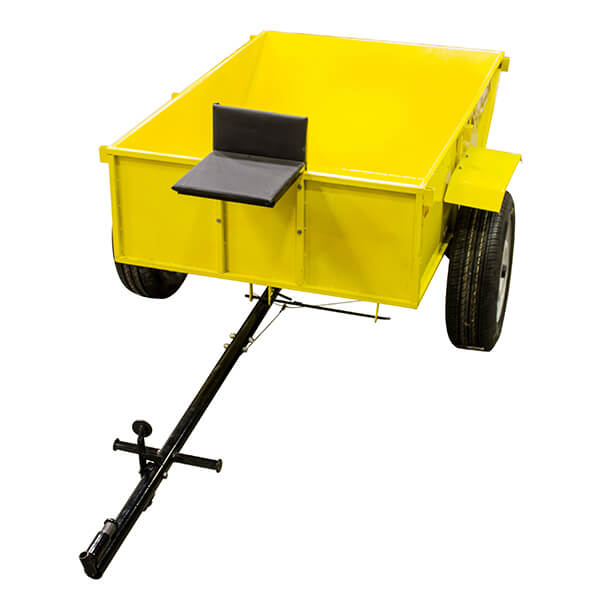 - В передней части тележки предусмотрено сидение для оператора, а на стальной трубе дышла есть упоры для ног и педаль ленточного тормоза.