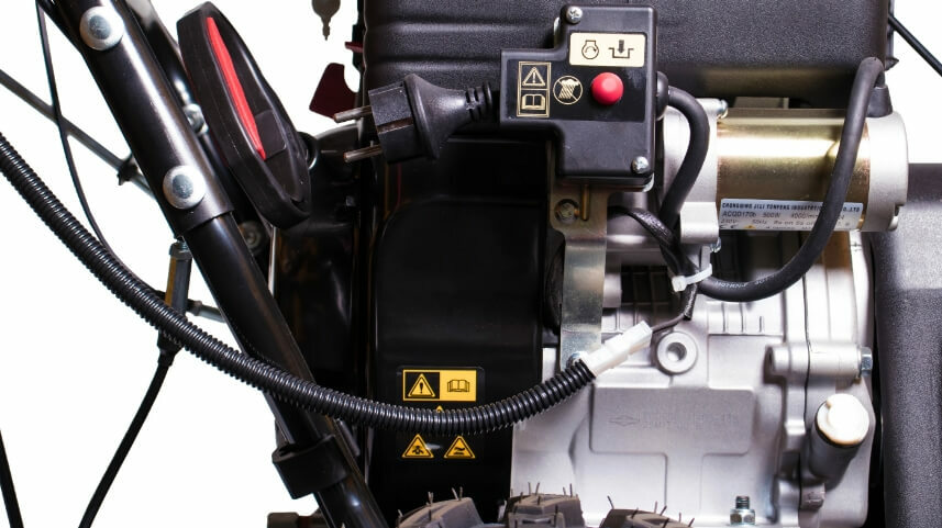 - Поскольку данная модель снегоуборщика не оснащена автономным аккумулятором, питание стартера производится посредством подключения к стандартной сети с переменным током. Этот момент гарантирует, что машина запустится даже в случае долгого простоя в охлажденном помещении.