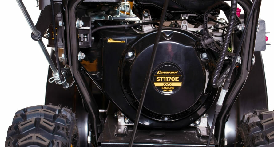 Бензиновый снегоуборщик CHAMPION ST1170E оснащен 4-тактным двигателем с воздушным охлаждением мощностью 11 л.с.