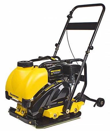 Виброплита Champion PC9750FT - предназначена для уплотнения песка, гравия, битумногравийной смеси, каменной брусчатки при строительстве и ремонте дорог и тротуаров, автомобильных стоянок, площадей, спортплощадок, фундаментов, инженерных сетей и других строительных работах. Виброплита Champion PC9750FT оснащена фирменным 4-тактным одноцилиндровым двигателем мощностью 6.5 л.с. Запуск двигателя производится ручным стартером. Объем топливного бака составляет 3.6 л, который рекомендуется заправлять бензином не ниже АИ-92. Контроль уровня масла в картере, объем которого 0.6 л осуществляется с помощью датчика. При недостаточном уровне масла двигатель не запустится.