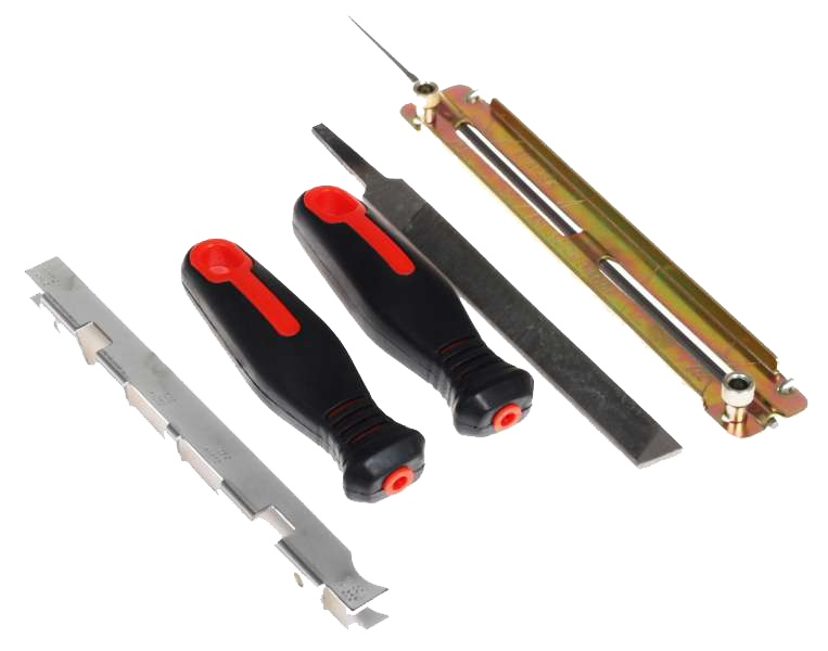 Заточной набор для цепей 3/8 рм (калибр + напильник 4,0 + плоский напильник + державка + ручки)