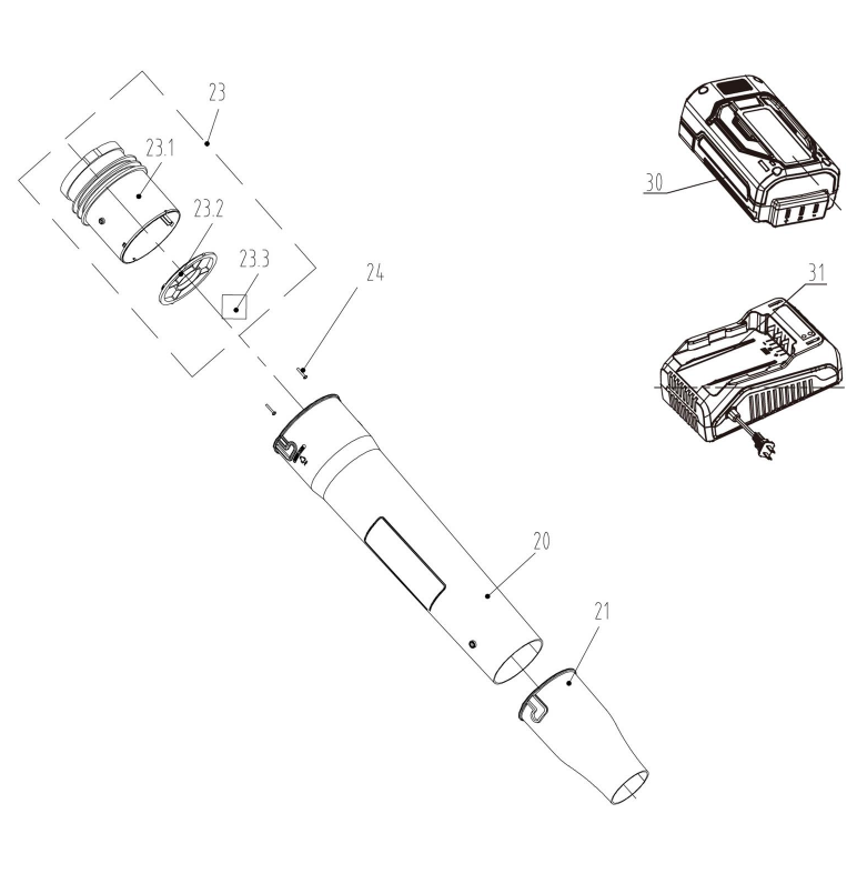 1 | Корпус | BB400 Воздуходувка аккумуляторная Чемпион | Запчасти, сервис, ремонт
