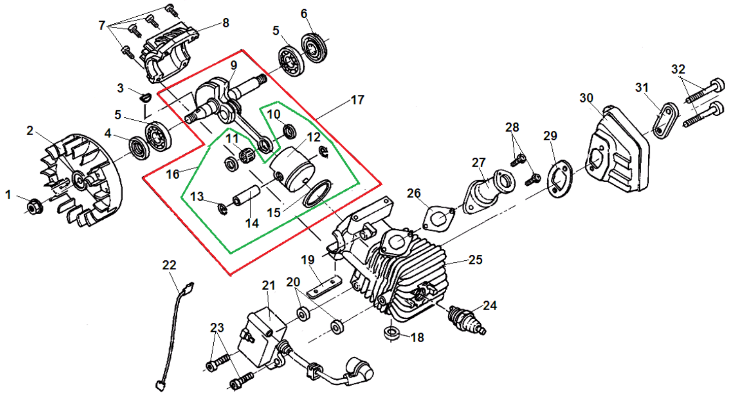 1 ПОРШЕНЬ - ЦИЛИНДР - СВЕЧА - МАХОВИК - МАГНЕТО | Запчасти для бензопилы чемпион 125-Т до 15.01.2023 года | Поставка по России | Магазин-Сервис в СПБ |