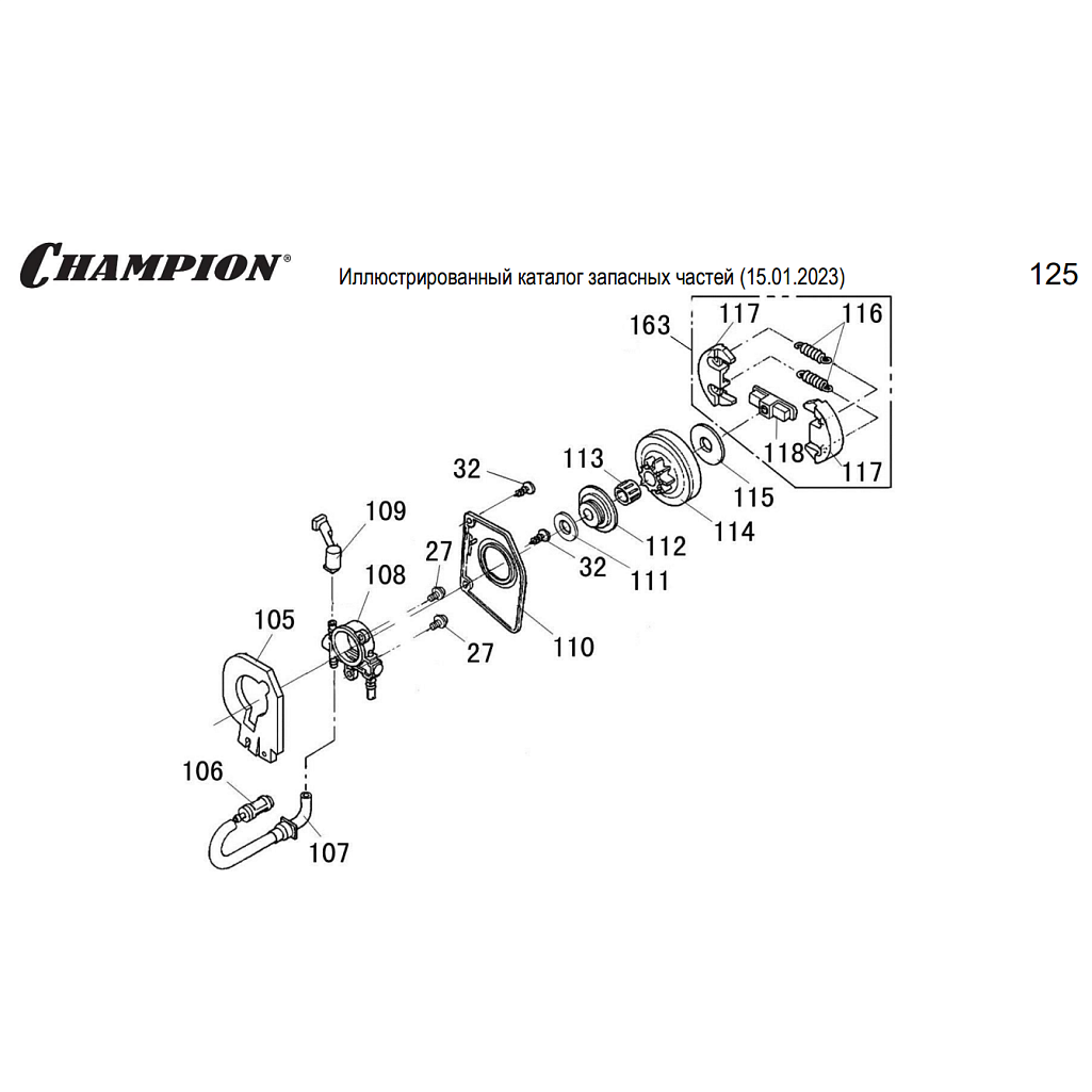 6 | Запчасти для бензопилы чемпион 125-Т | | обновлённая деталировка после 15.01.2023 года | СЦЕПЛЕНИЕ - ЗВЕЗДОЧКА - МАСЛОНАСОС | Поставка по России | Магазин-Сервис в СПБ |